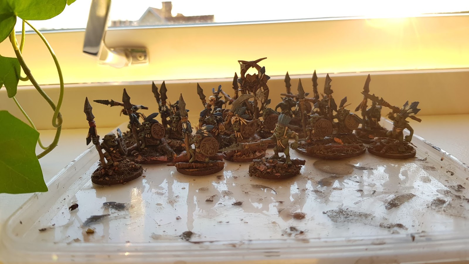 I just wanted to share some work in progress pictures of the infantry of my Forest goblins.
