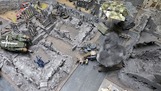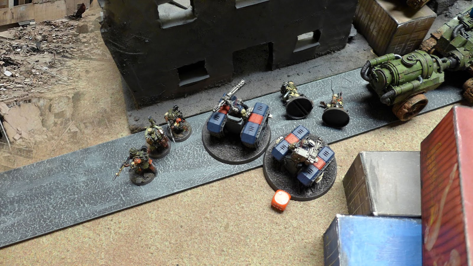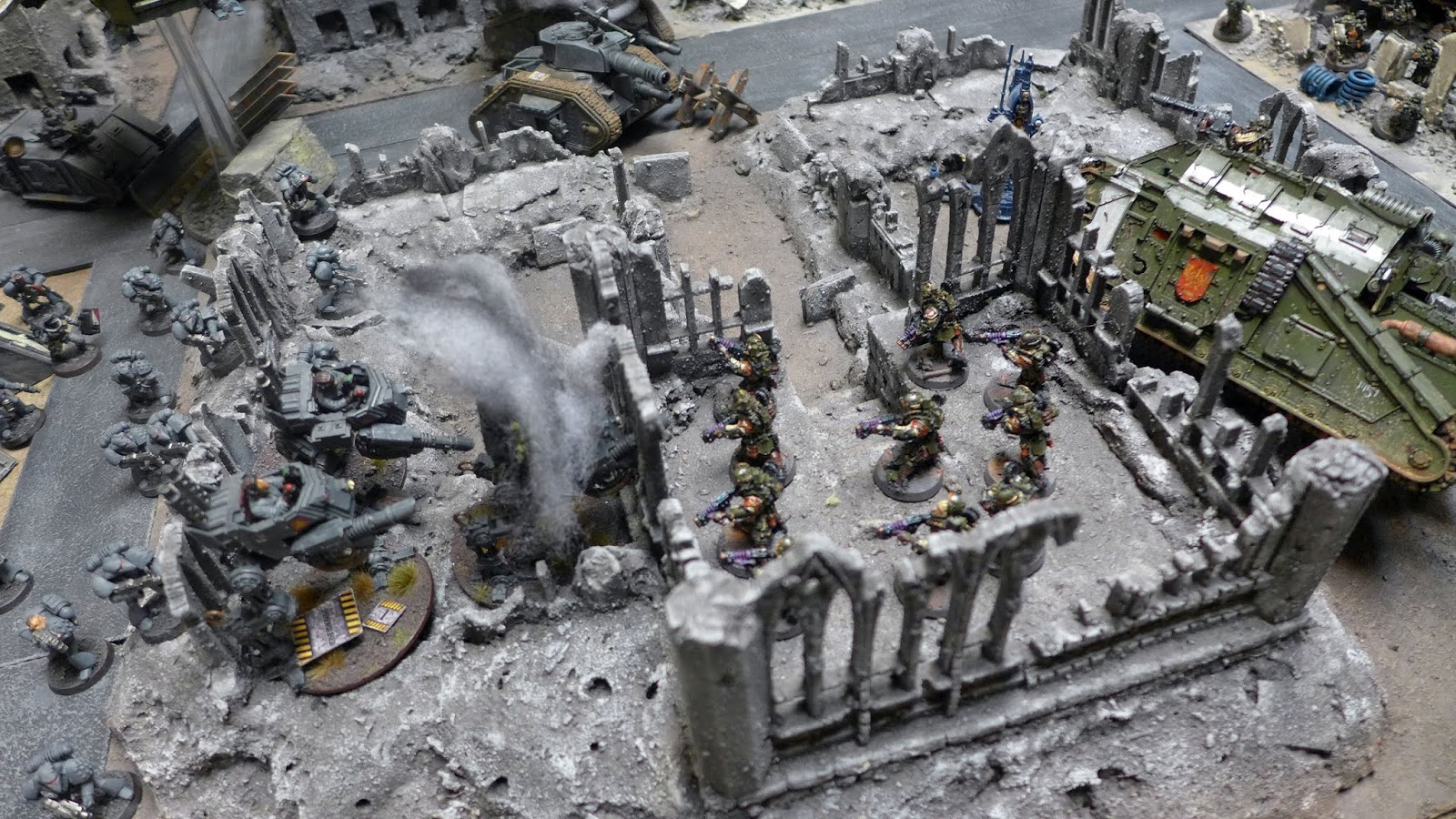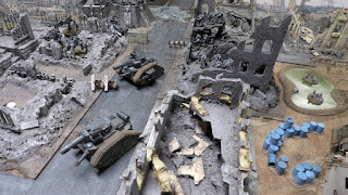 Under fire from his missile launcher terminators my Vigilators had lead the Terminator squad far up the board inside a ruined building...