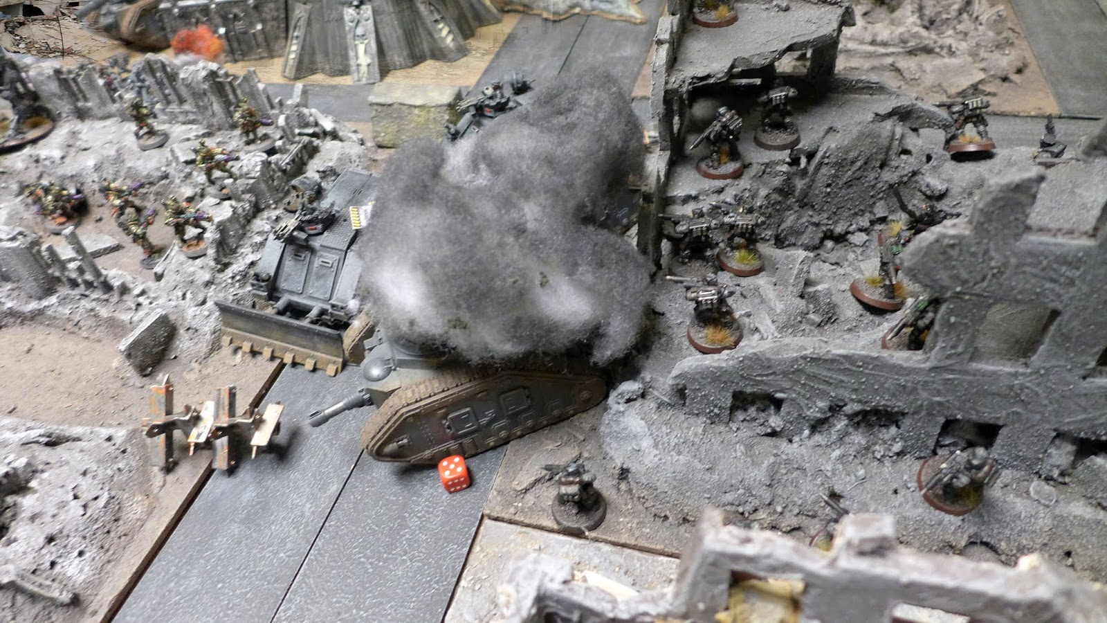 My Vindicator had started to engage the enemy 10man heavy Volkite team, their spread out line and the cover from the ruin saved them from most casualties.