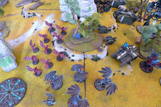 Rulewise this meant that with the failed grounding check of the deamonic monster he would be counted as non flyer in my opponents round and would be free to charge my forces next... The troops on the ground uttered more then one curse word as the massive creatures starting to rise and brushing of the dust after the crash...