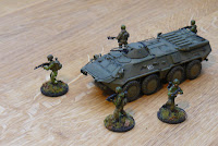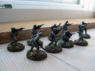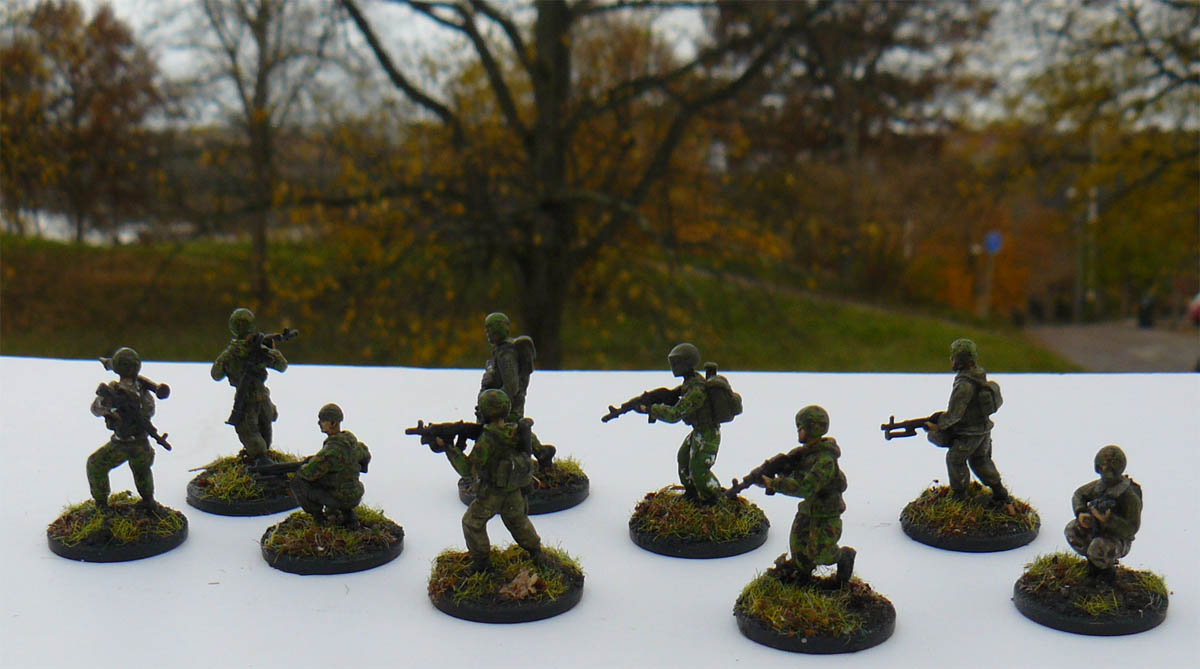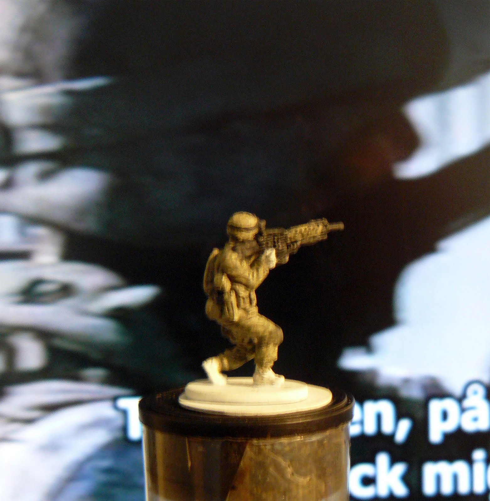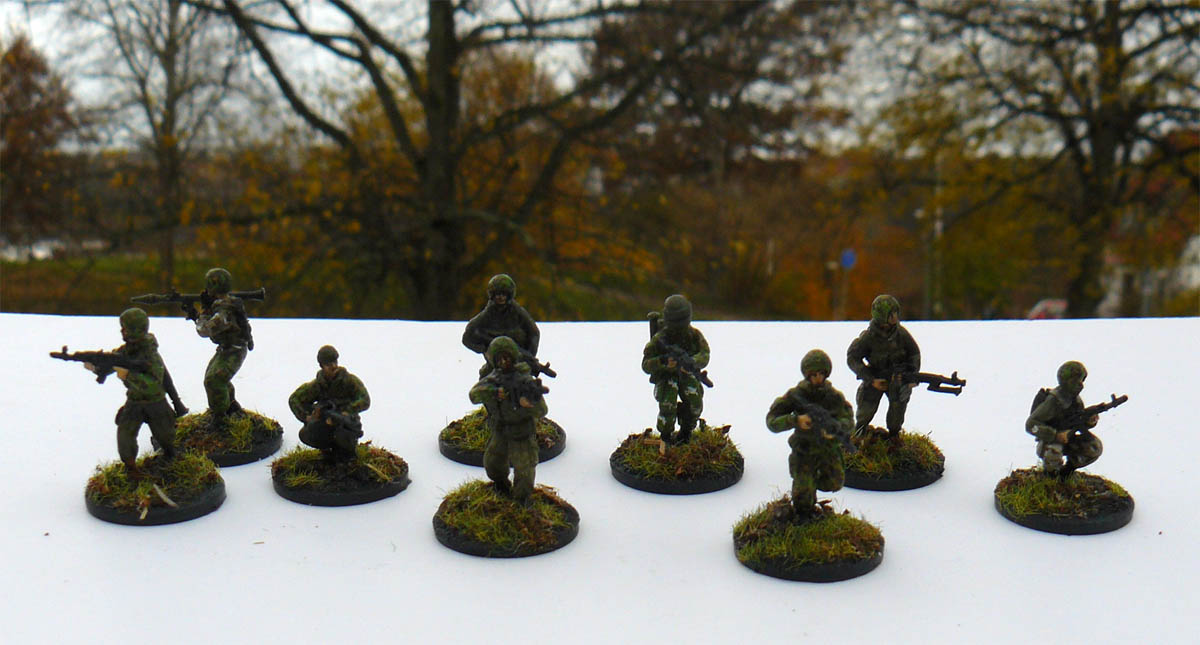 The American posted earlier in this blog was just to get a grip on the scale and test paint some models, my intention is to collect a force of modern Russians as my main army. Here are some of them, the ones I have painted as now.