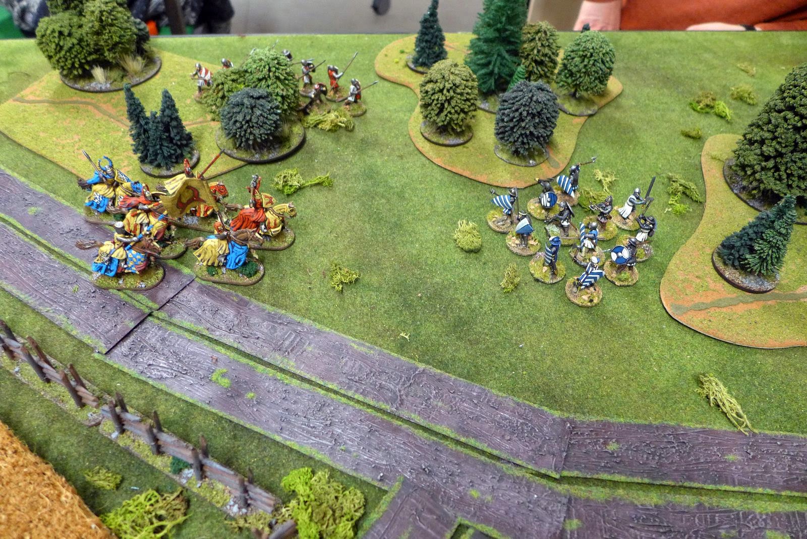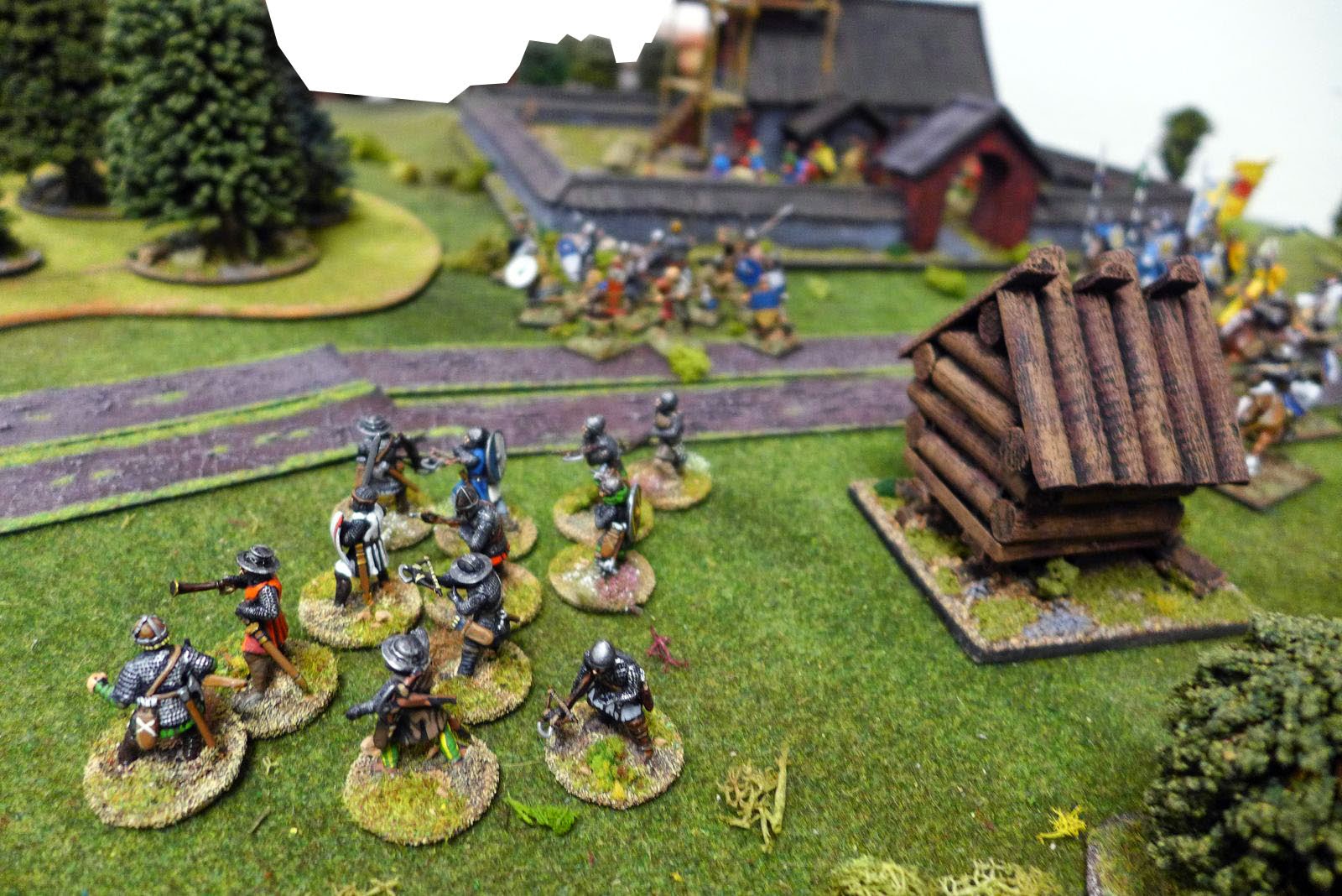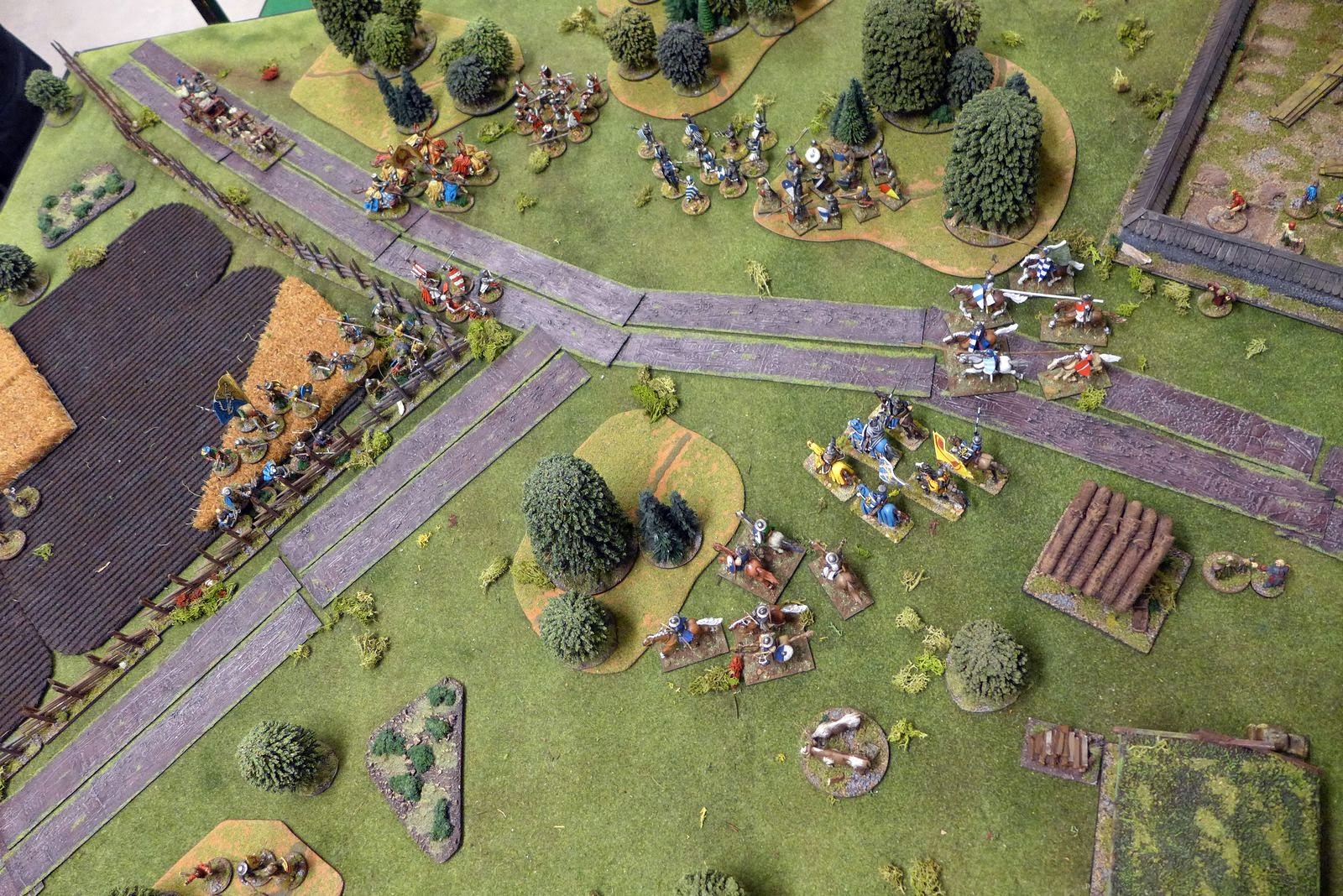 Gudmar of Ulvåsa advances and takes the forest with his Almoge mixed infantry.