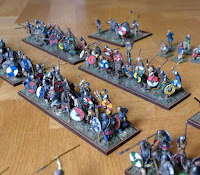 But the miniatures sure could use some love by now, some missing shields, arms, weapons and heads, besides the extra layer of shading or highlight some of these badly needs so I really dont know... Rebaseing them could be a way of working my way trough the collection.
