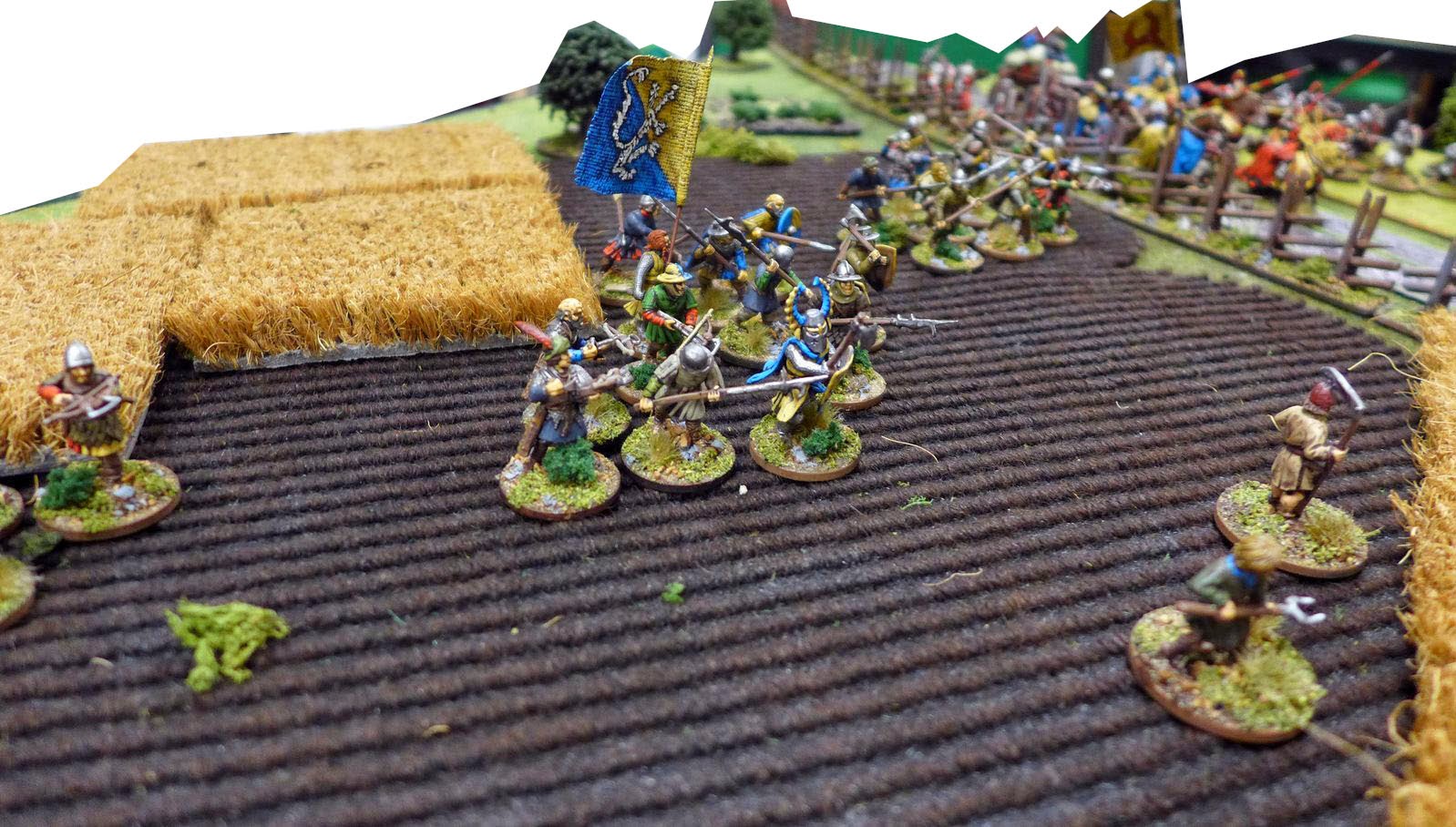 I have formed up a shieldwall (called schiltron in the rules) with my Leding troops and is waiting for the enemy.