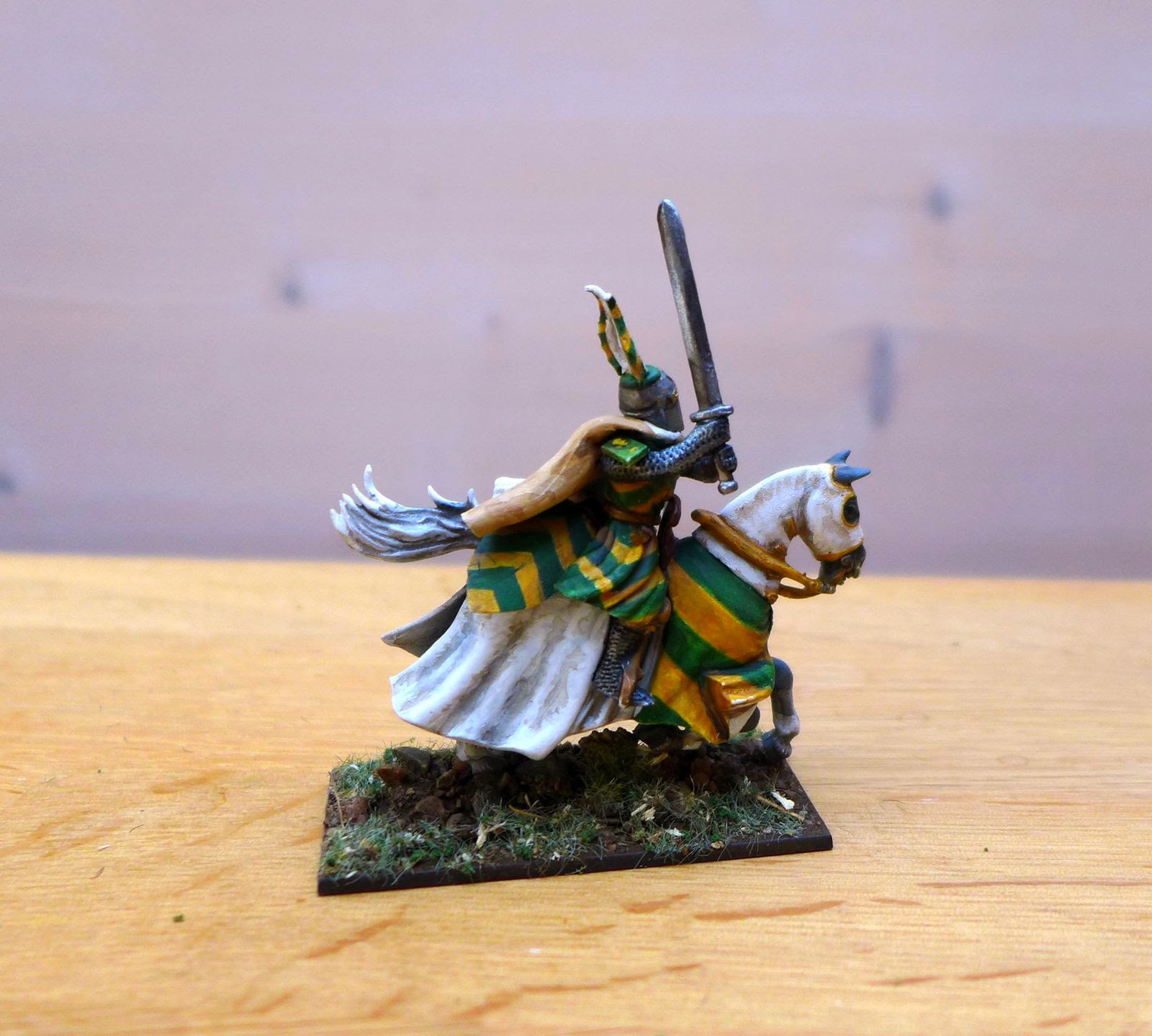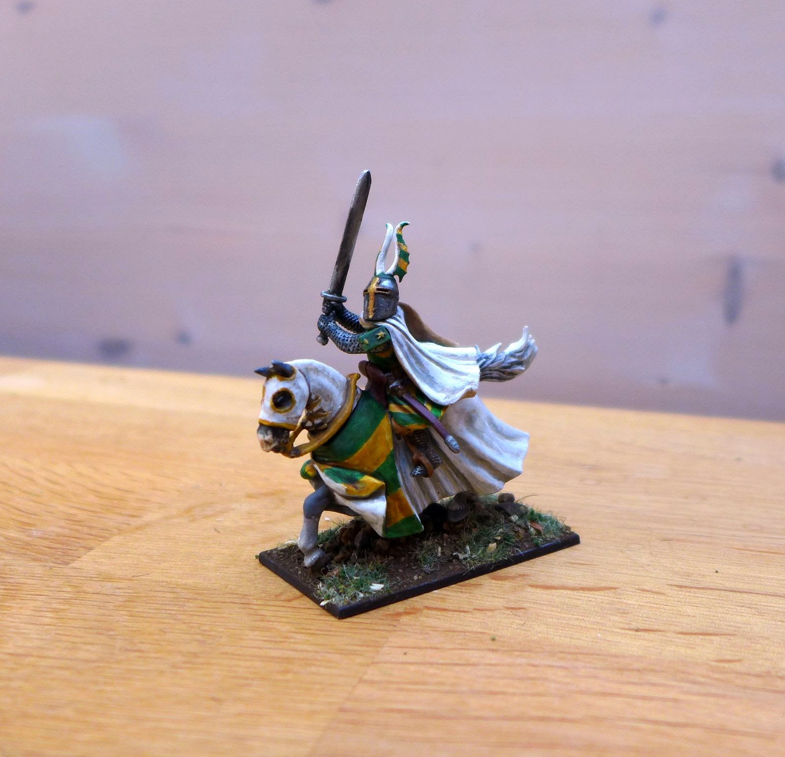 The blue and white knight here is more interesting then first glance gives. From one side he looks almost totally white and from the other almost totally blue. The effect is unfortunately somewhat hidden as he got double based with another knight.