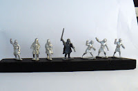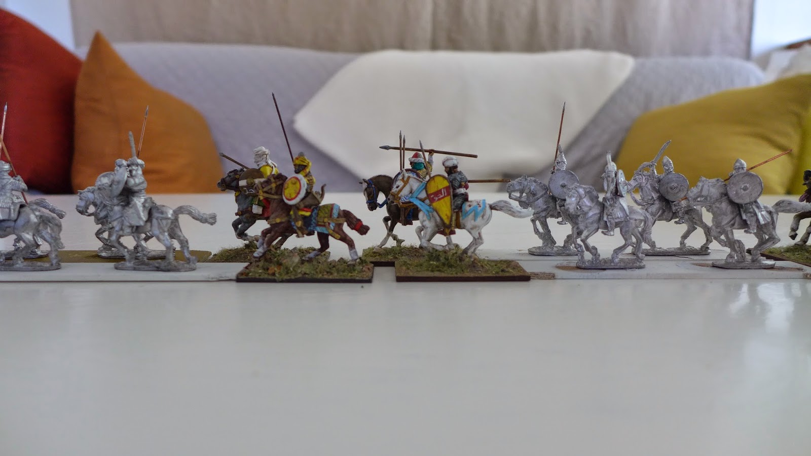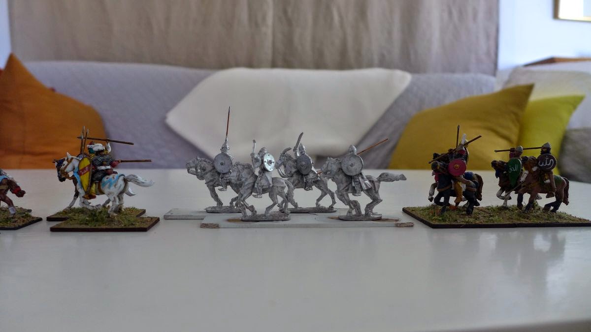 Perry miniatures, unpainted Old Glory Arab Armoured Cavalry, Musketeer miniature,Gripping beast (they use the same horses and are almost exactly sculpt-wise), converter plastic Conquest Games Normans, unpainted Old Glory Ghulams, Magister Militum.