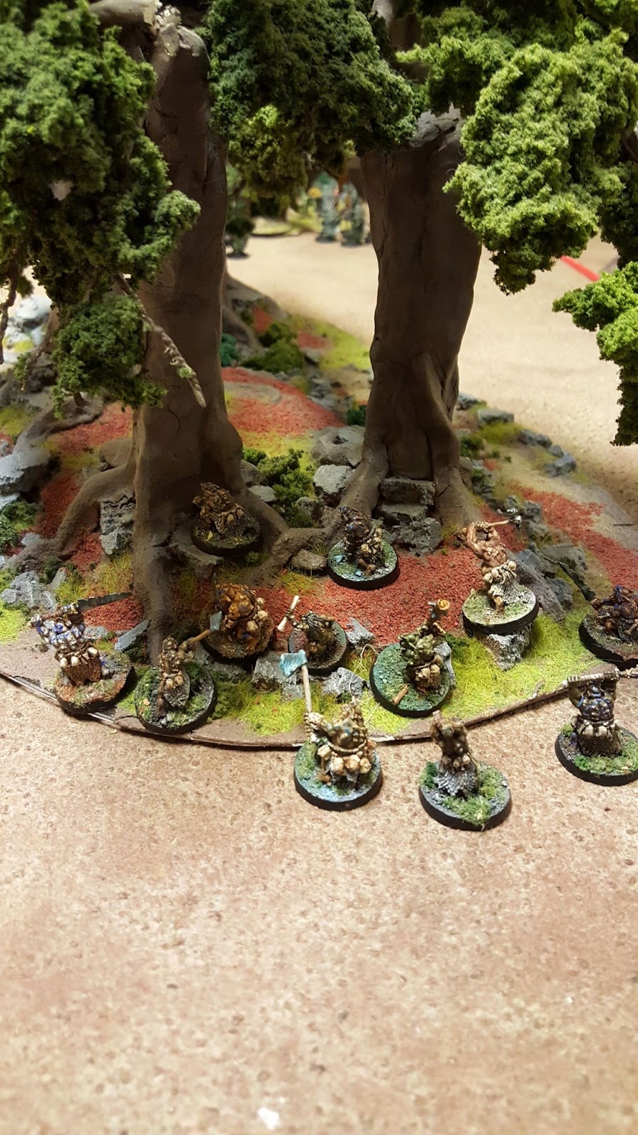 The Aelf lord had used the big trees as cover and advanced out on the other side. I had the Trolls and my Bonebacks to try to stop him...