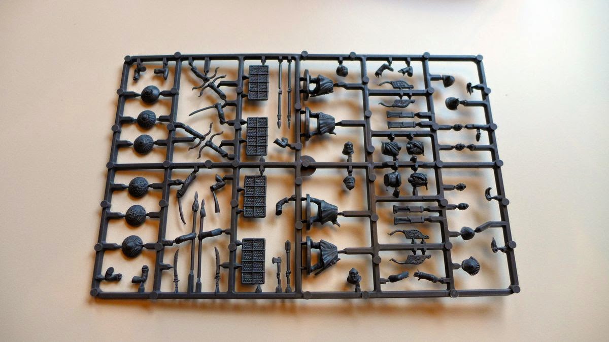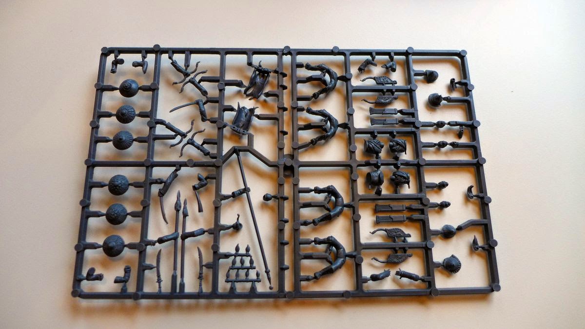 The contents of the sprues are rather similar as you can see here. The infantry box got more shields then the cavalry one, but one of the infantry sprues had the same middle section as the cavalry to act as a sort of command.