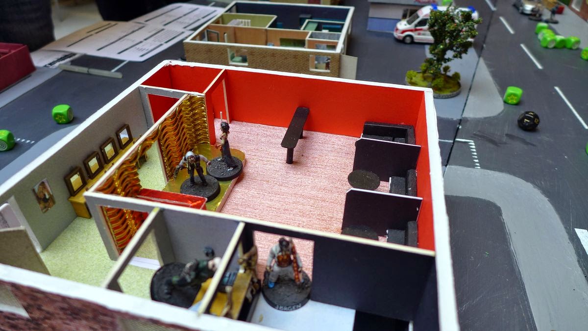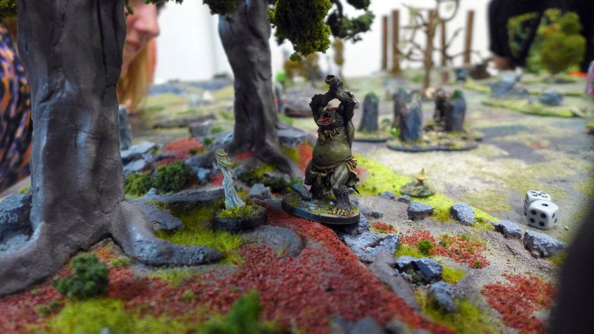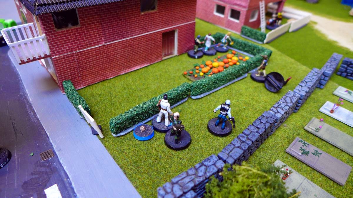 One of the players had a bike and sneaked past the zombies on the far side of the gaming table.