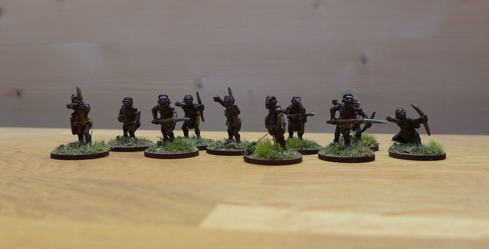 Here we have some Pygmies from Wargames Foundry, I bought these and a couple of other miniatures when they sent a free pygmy with spears with orders from them. And they sent me an extra on top of that, nice.