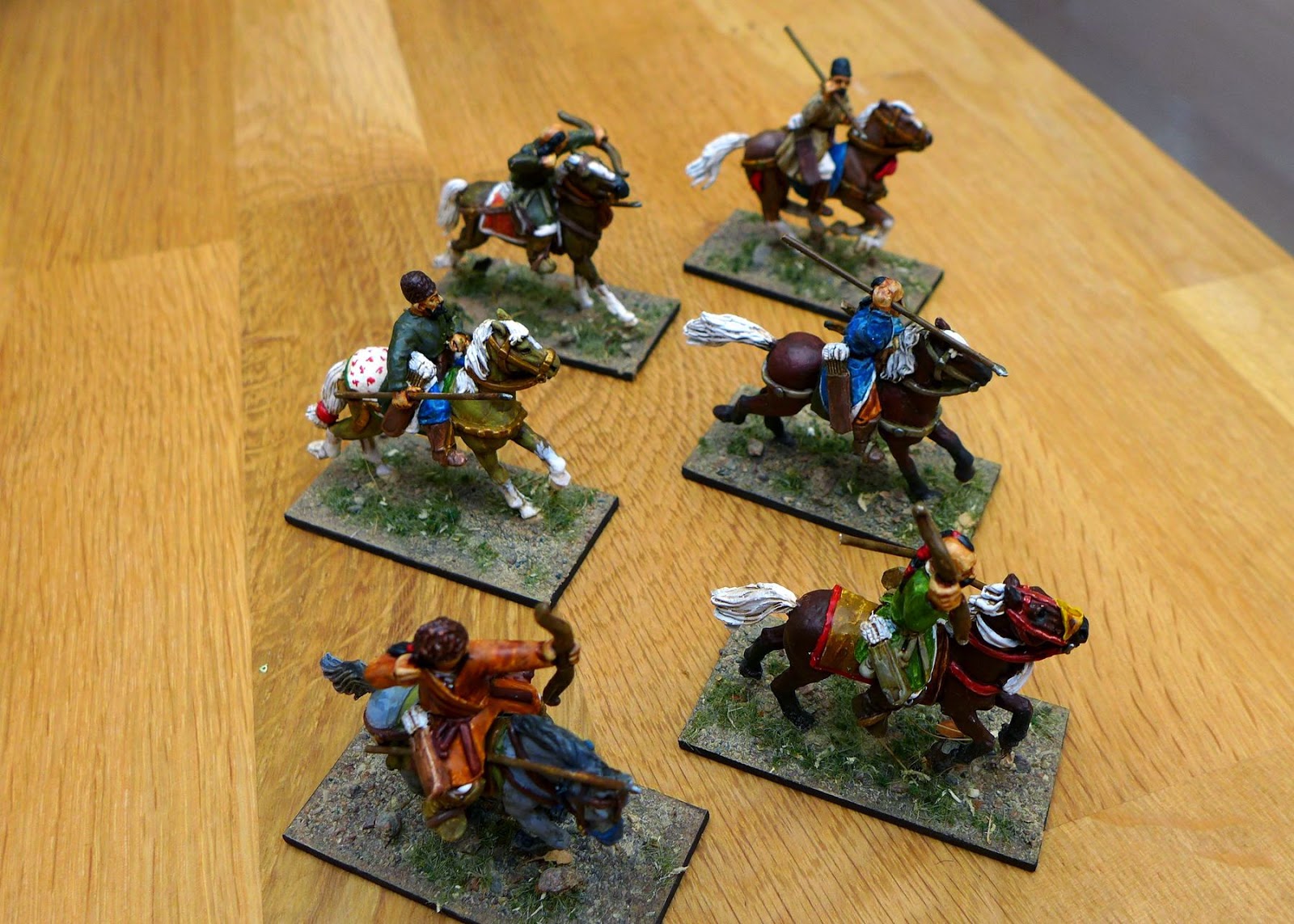 The miniatures are from Musketeer Miniatures and I must say that I like these a lot more then his spear equipped heavy cavalry. Still a little chunky but with some less stiff poses. These got a more vibrant and more motion in their sculpts.