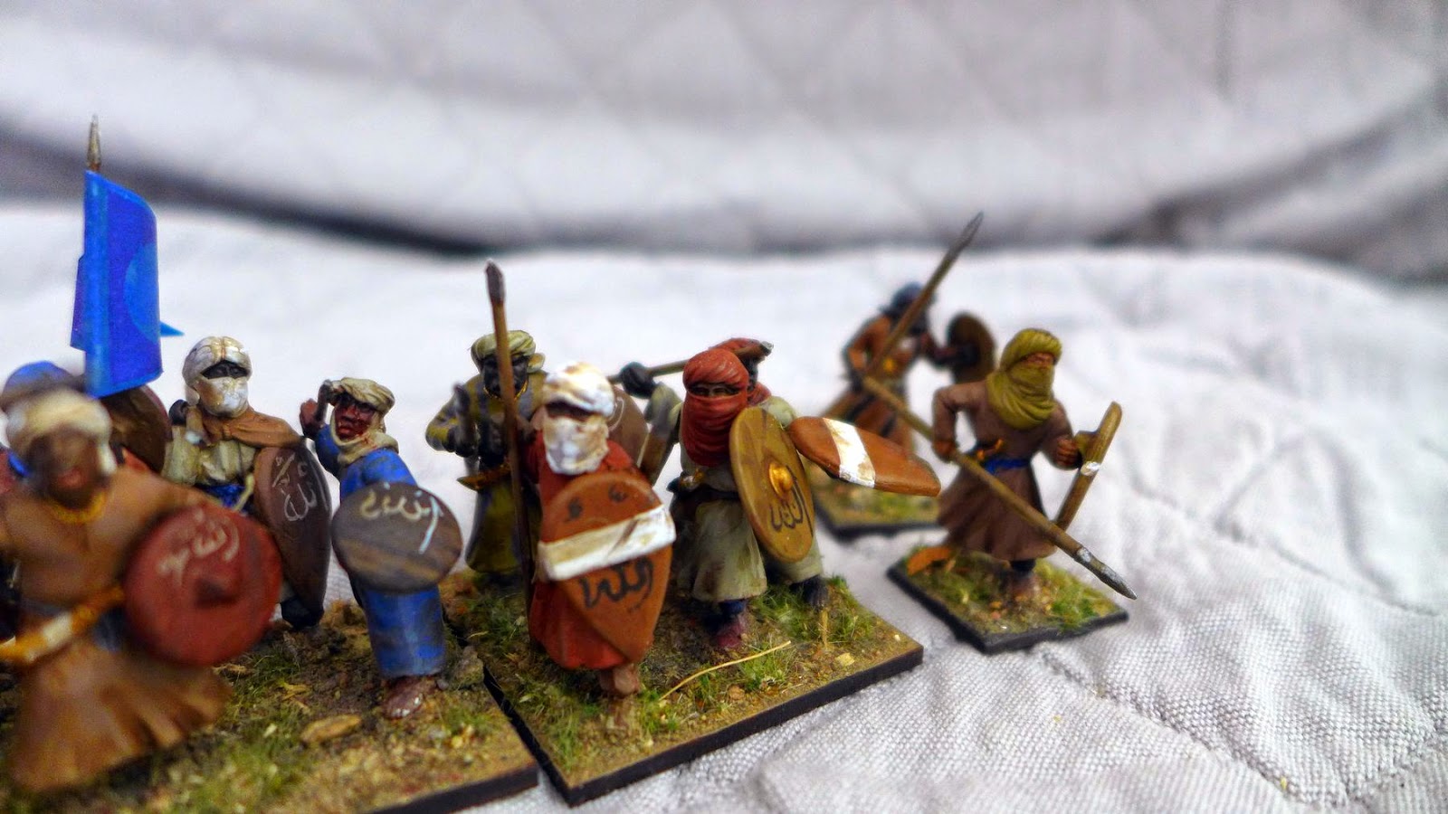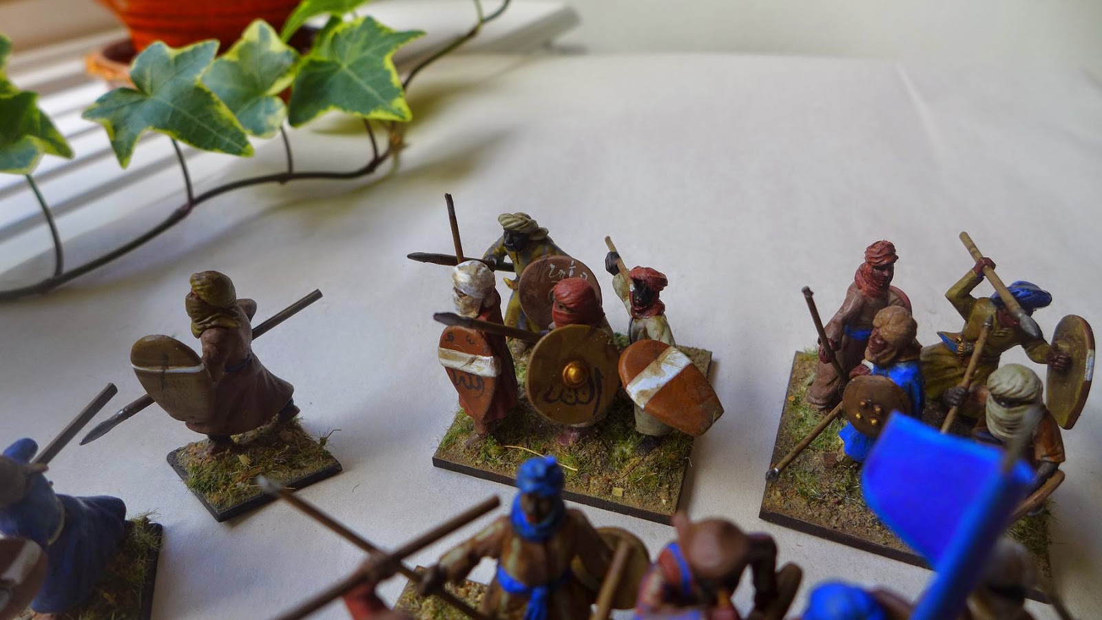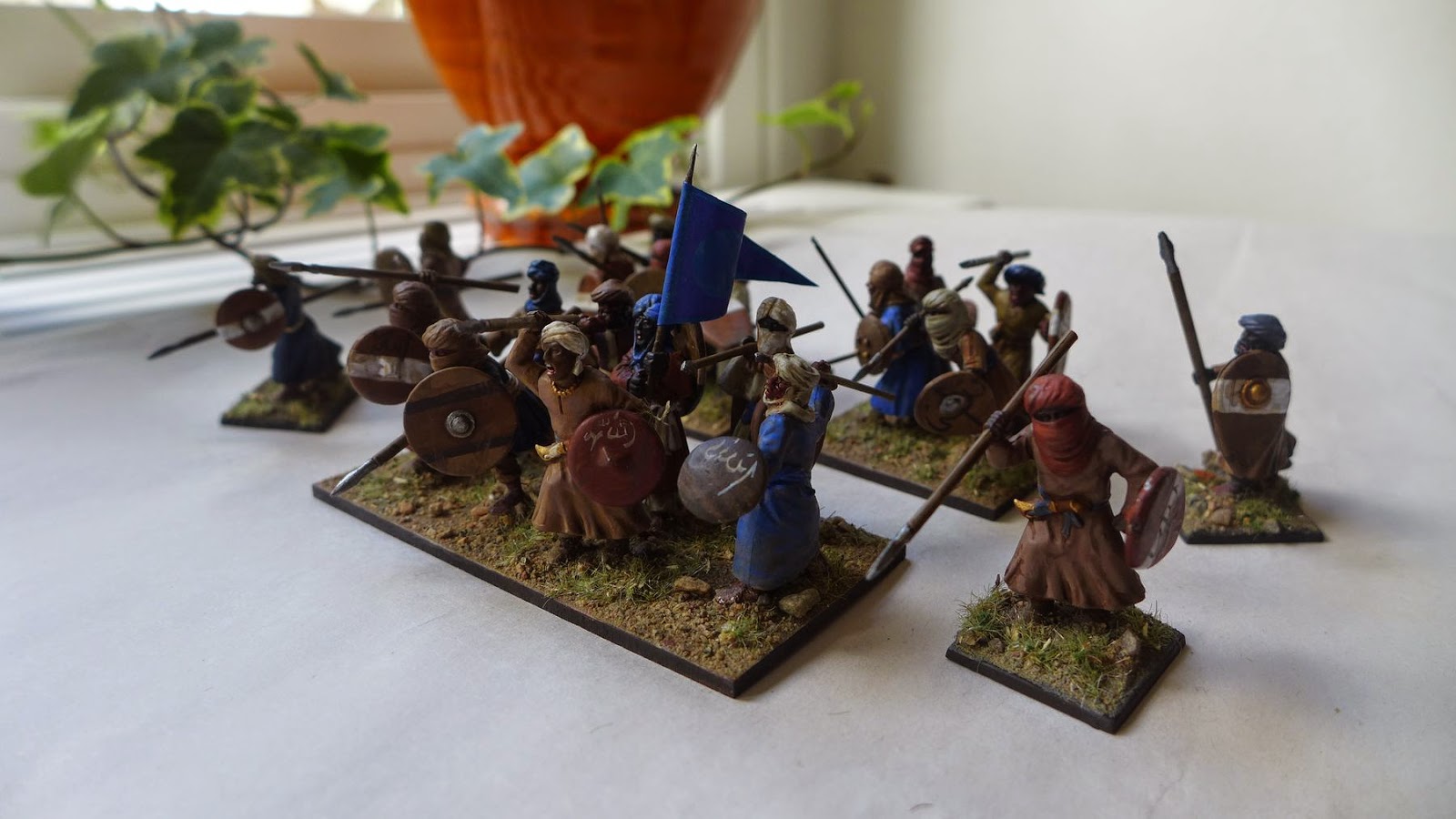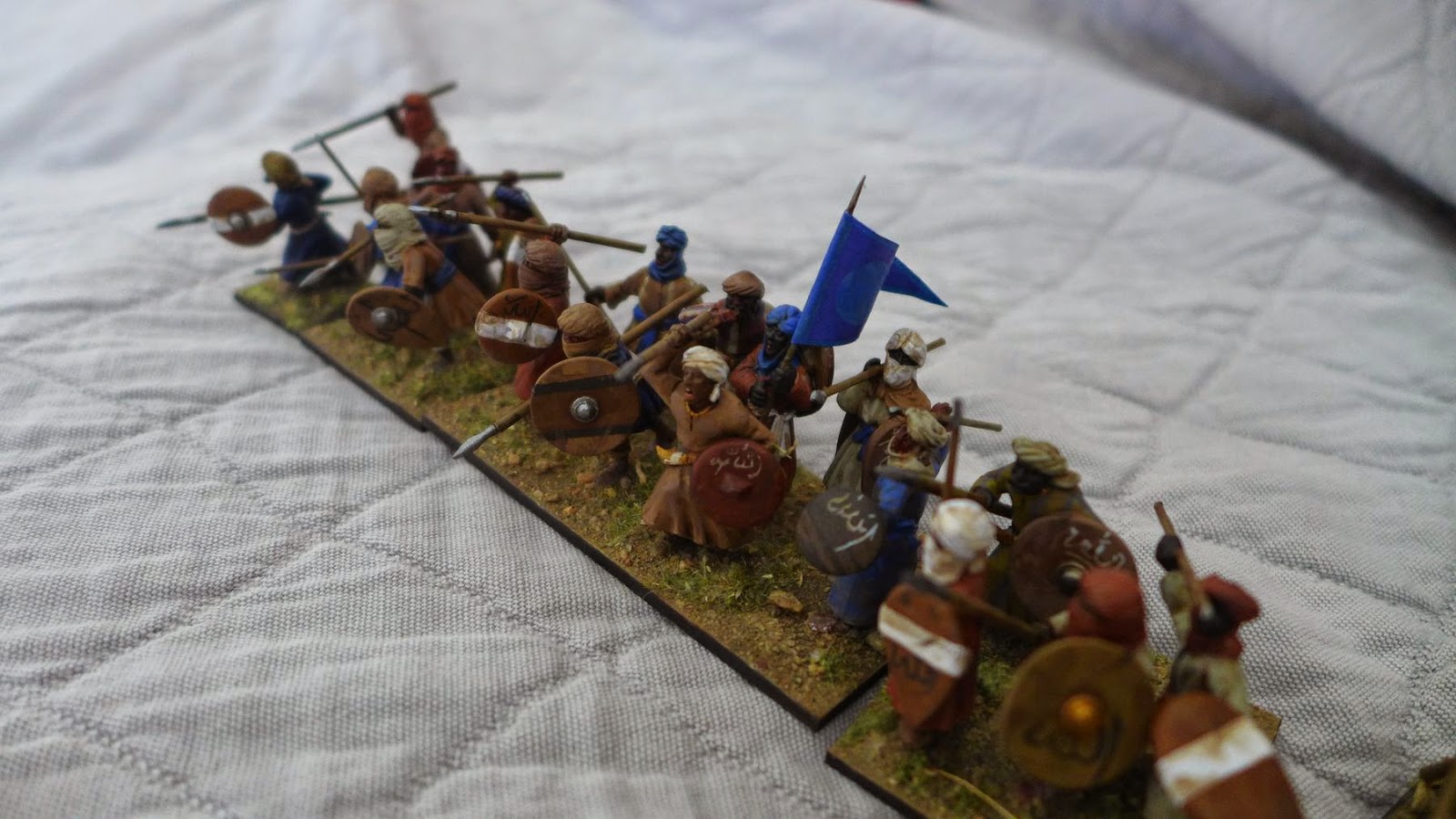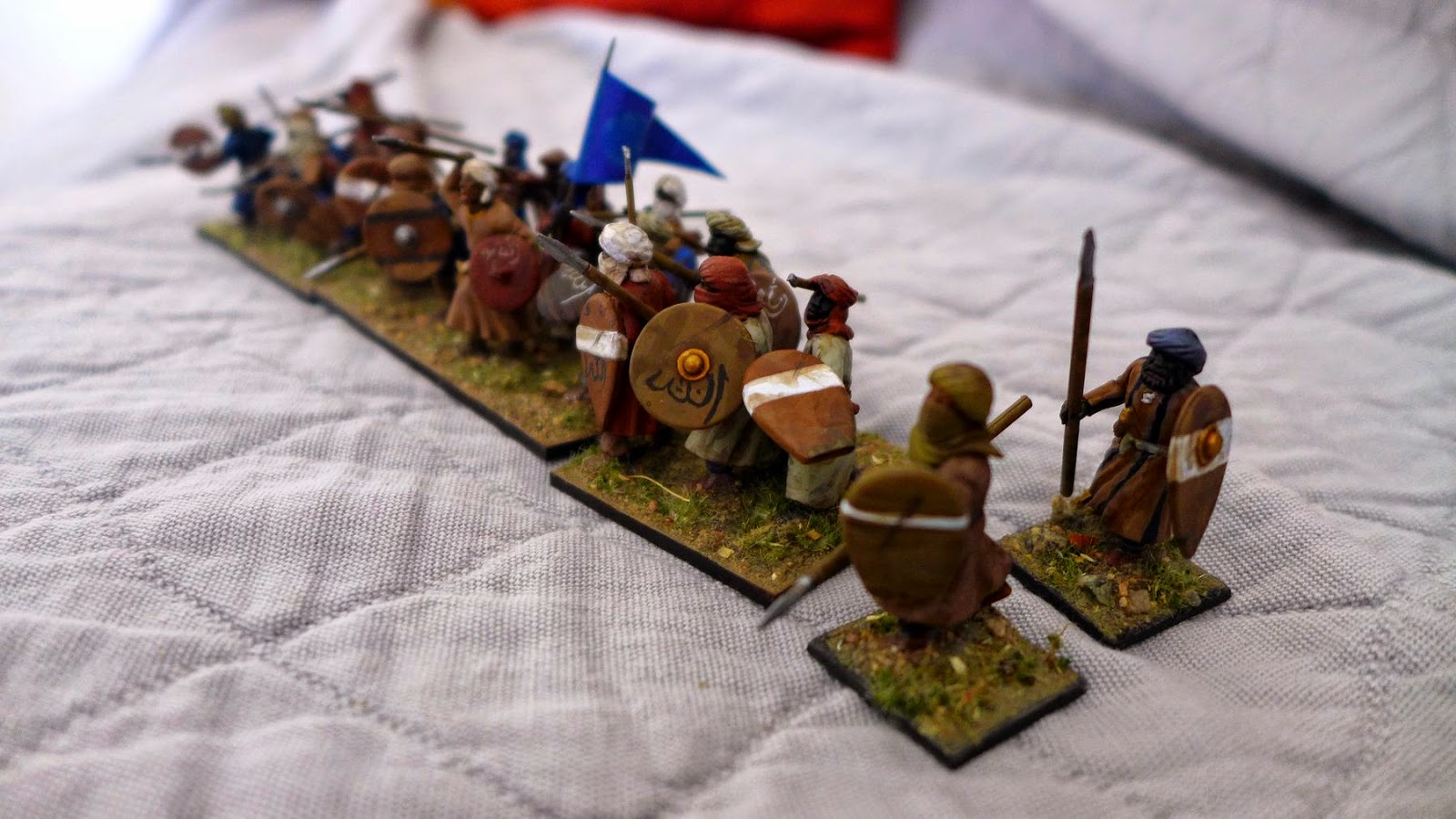 The miniatures are a mixture of Gripping Beast plastic and metall arabs/morish troops, some really nice Magister Militum miniatures and some of Perrys Mahadist upprising plastic miniatures with bits swaped with the Gripping Beast plastics. I mixed the shields around to get a nice variation.