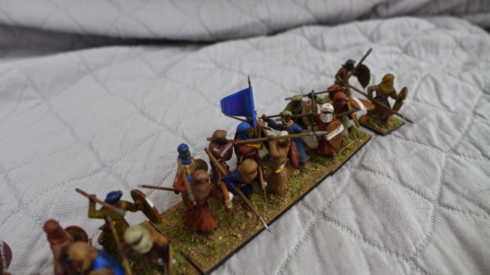 I painted another unit of Saharan/Sudanese. This time a spearmen unit. They will join up with my Ayyabid and as they are somewhat toughter tribal warriors then your average citydwelling spearmen unit I will field them without the negeative special rules the standard spearmen get in a Hail Caesar Ayyabid force.