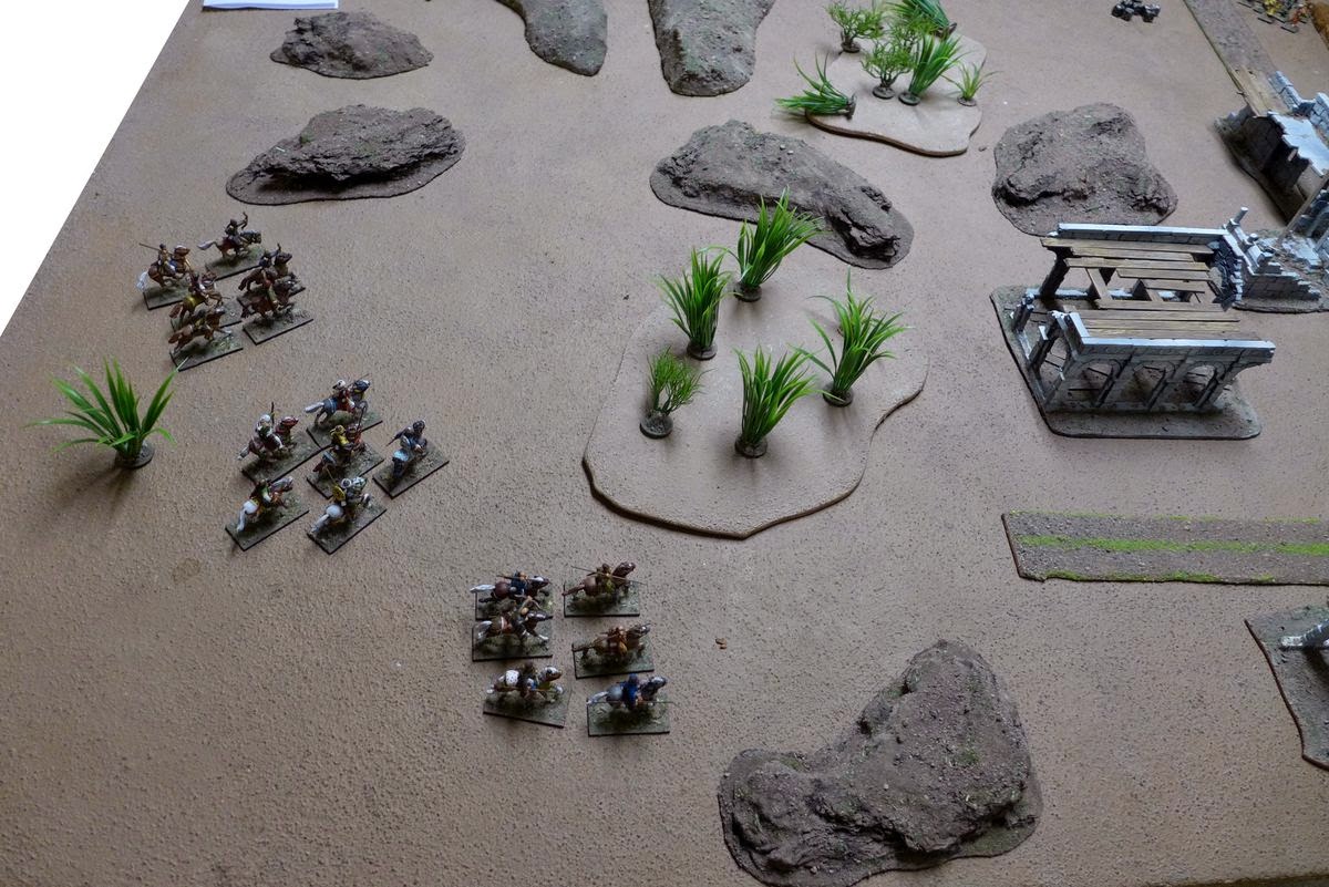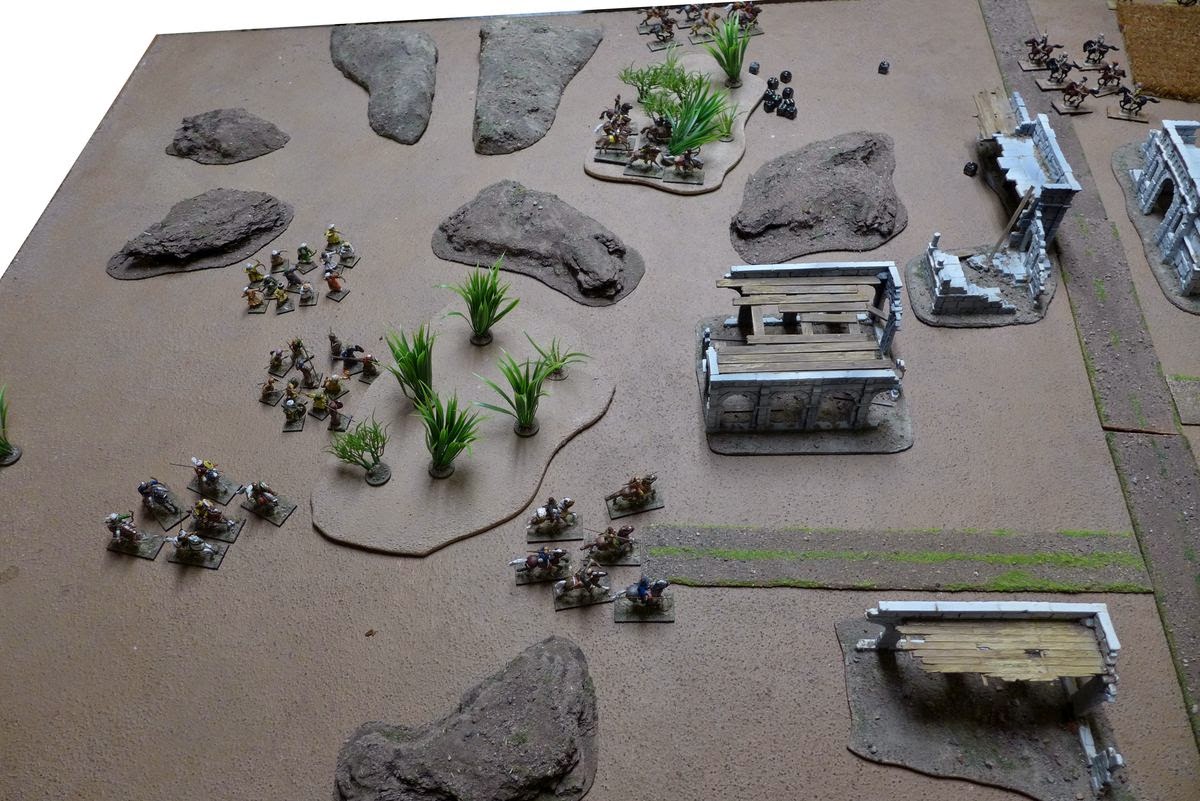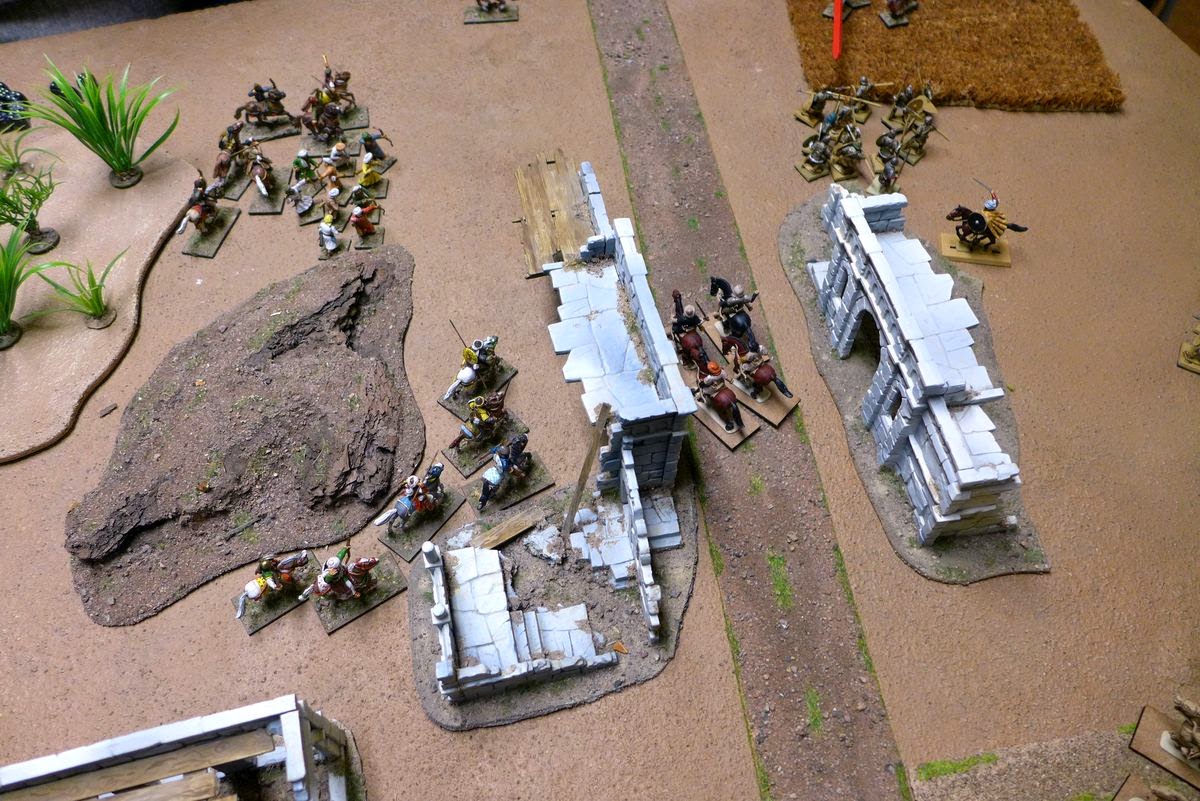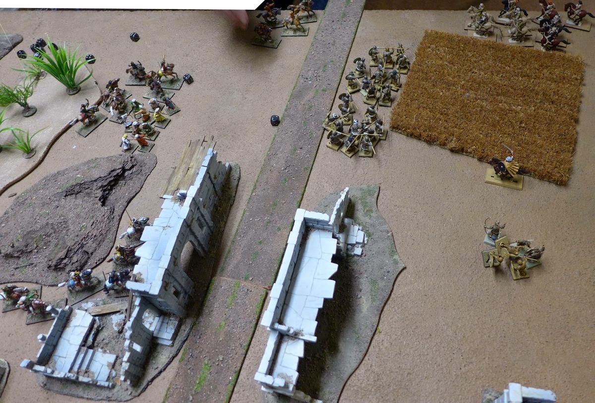 My plan now was to try to get the archers up onto those ruined building for a bit of added cover and to get a nice fieldview for their archery.