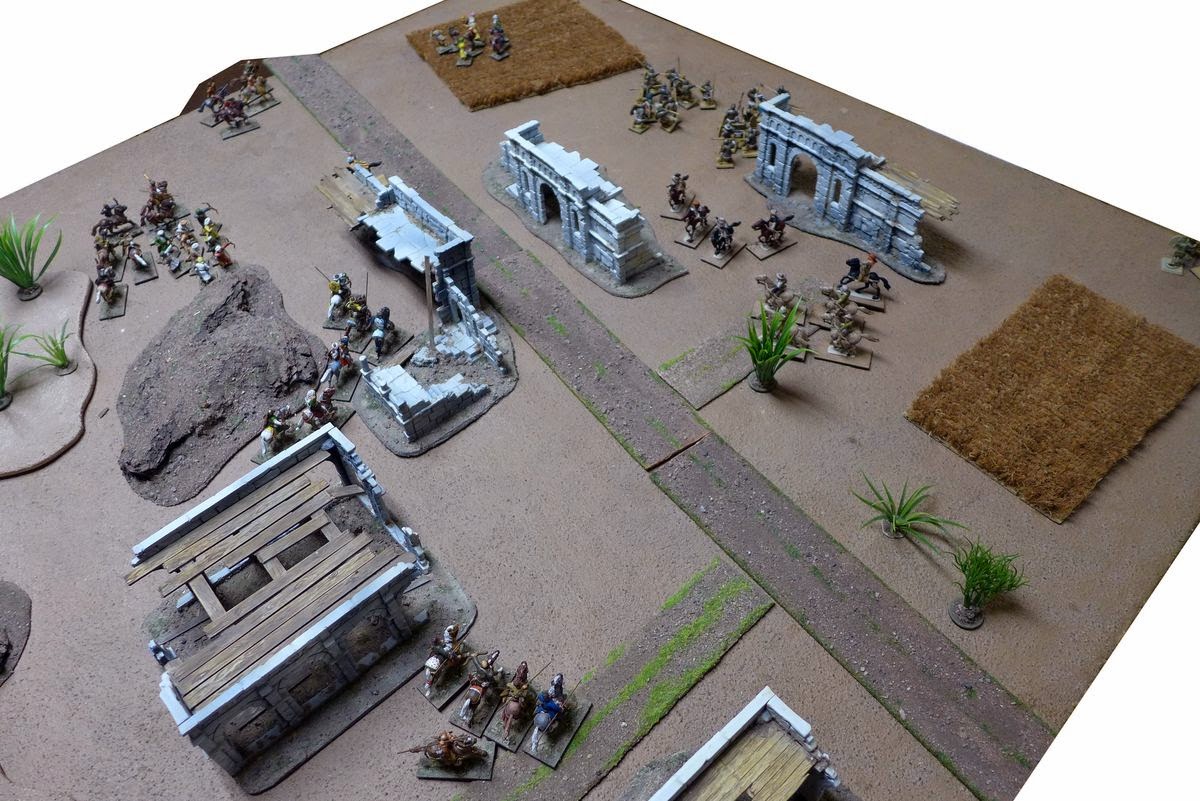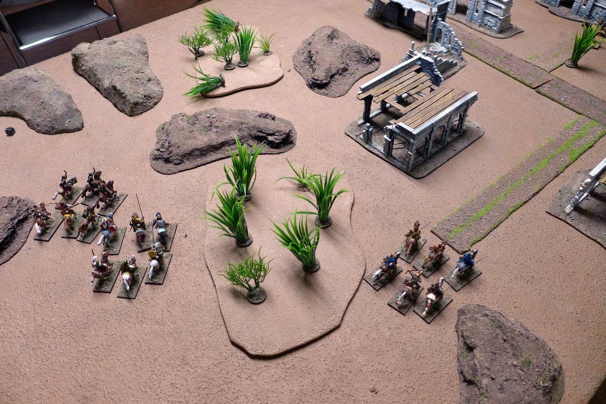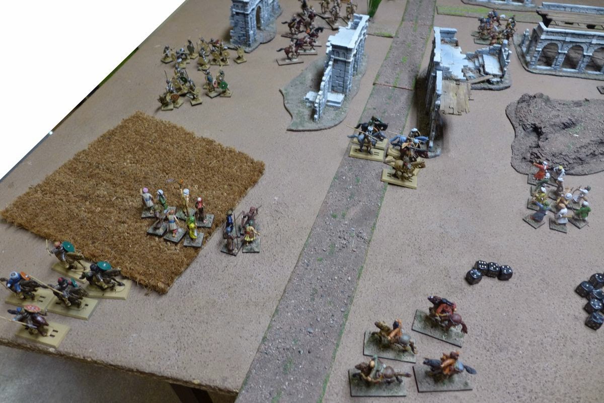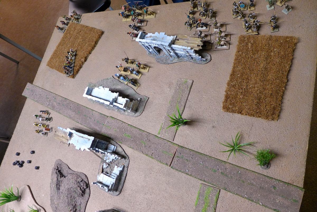My plan now was to try to get the archers up onto those ruined building for a bit of added cover and to get a nice fieldview for their archery.