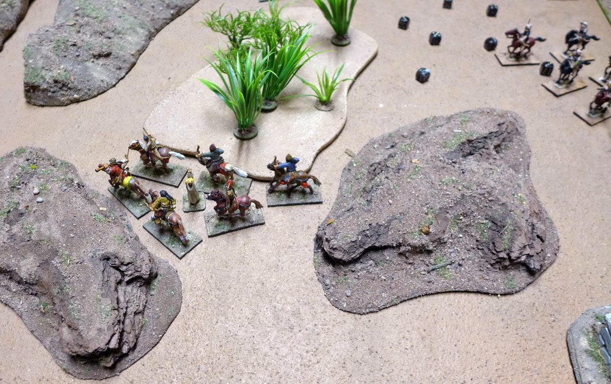 A unit of Turcoman horsearchers entered the forest and searched for the missing Imam, they needed a 6 to find him in the first of the possible terrain pieces, they did not manage to find him here.